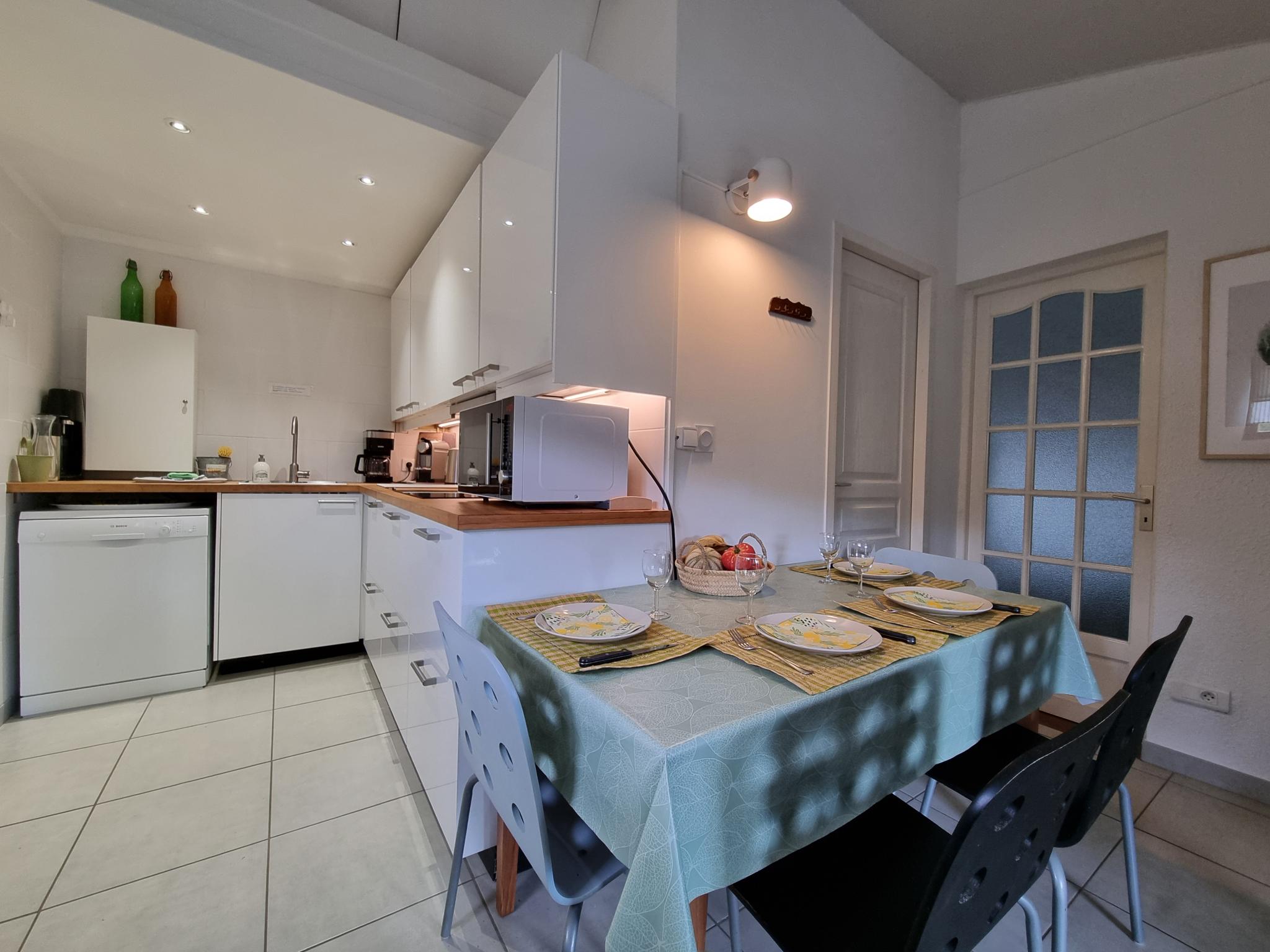 bijkeuken(buitenom bereikbaar) met koel-/vriescombinatie, wasmachine , patio, terras, tuin(privé, deels omheind), ligbedden, 2x parking, parasol, zwembad(privé, roldek, geopend van Jul t/m Aug), lounge set