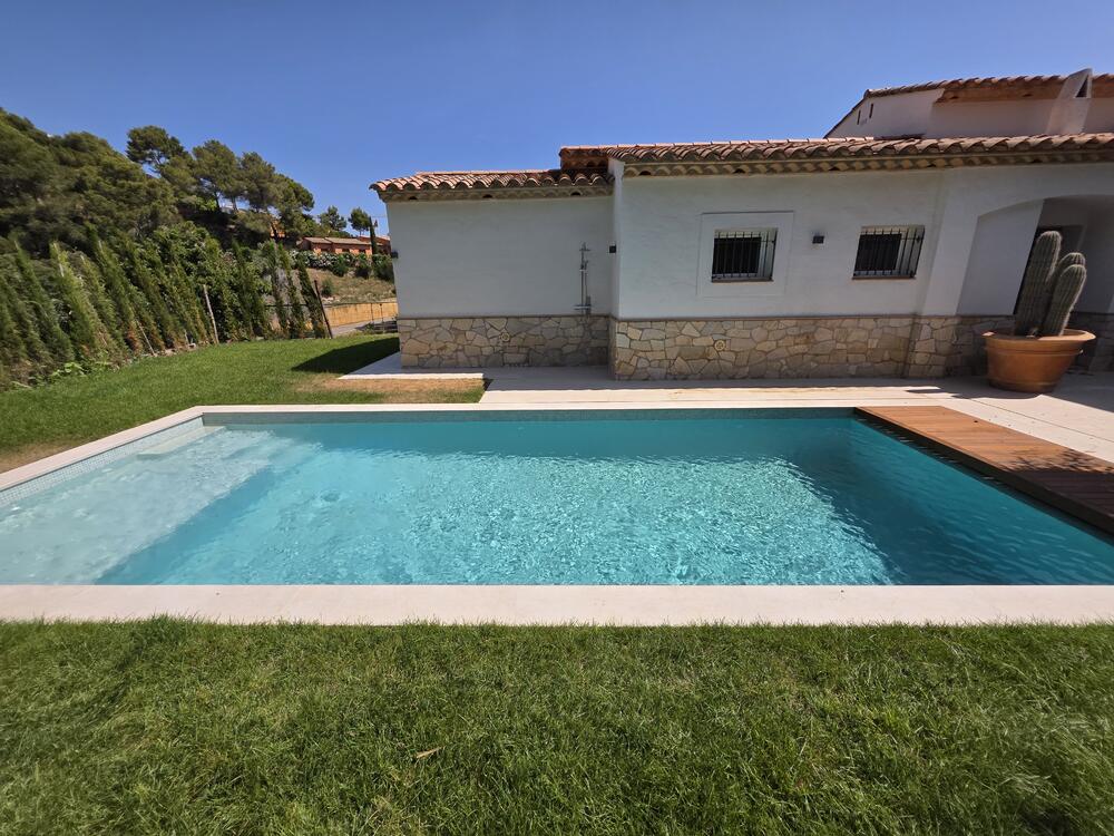 Heerlijke villa met airconditioning, privé zwembad, jacuzzi én zeezicht, plus vier slaapkamers en twee badkamers.De woning, het zwembad en de terrassen zijn allemaal gelijkvloers. Het privé-zwembad en een deel van de tuin liggen aan de achterzijde van het huis, waardoor u over veel privacy beschikt rondom het zwembad. Behalve een zwembad is er aan de andere zijde van het huis ook nog een jacuzzi. Van hieruit kijk je prachtig uit over zee! Bij het zwembad staan ligbedden. Aan de achterkant van het huis is een groot overdekt terras met een loungeset en een stenen barbecue en nog terrassen met allemaal schitterend uitzicht op zee.De woonkamer is ruim en gezellig ingericht. Vanuit de woonkamer kijkt u uit over de Middellandse zee en de omliggende heuvels.De woonkamer heeft een open verbinding naar de keuken. De woning is voorzien van dubbele beglazing en centrale verwarming. De villa heeft twee luxe badkamers, waarvan één ensuite met douche. De ander is voorzien van een ligbad, douche, dubbele wastafel, toilet en bidet. De woning is voorzien van veel ramen, waardoor u naar alle kanten kunt genieten van het uitzicht. De ramen kunnen worden afgeschermd met elektrische rolluiken.De volledig ingerichte keuken heeft als bijzonderheid het hoge aanrecht van 1m. U beschikt o.a. over een ruime koel- en vrieskast, magnetron/grill, elektrische kookplaat, afzuigkap en een vaatwasmachine.De villa heeft vier slaapkamers. Twee slaapkamers hebben een tweepersoonsbed en twee slaapkamers hebben twee 1-persoonsbedden.De woning beschikt boven over een garage. Vanuit de garage komt u met een trap naar beneden direct in de woning. De woning beschikt tevens over wasmachine en droger.
