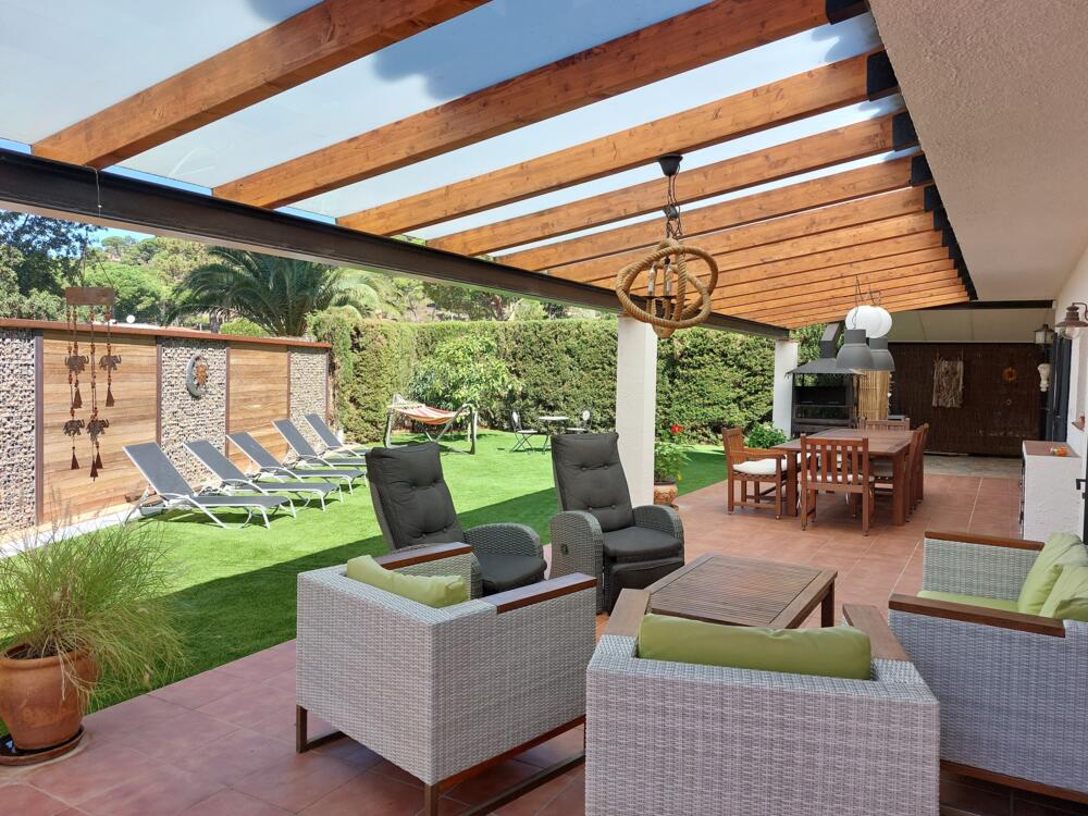 Deze vrijstaande woning ligt in de wijk Residencial de Begur en is van alle gemakken voorzien. Voor het huis ligt een heerlijke veranda met een ruime eettafel, barbecue en een loungeset. En voor ultiem ontspannen gaat u lekker in de hangmat liggen.