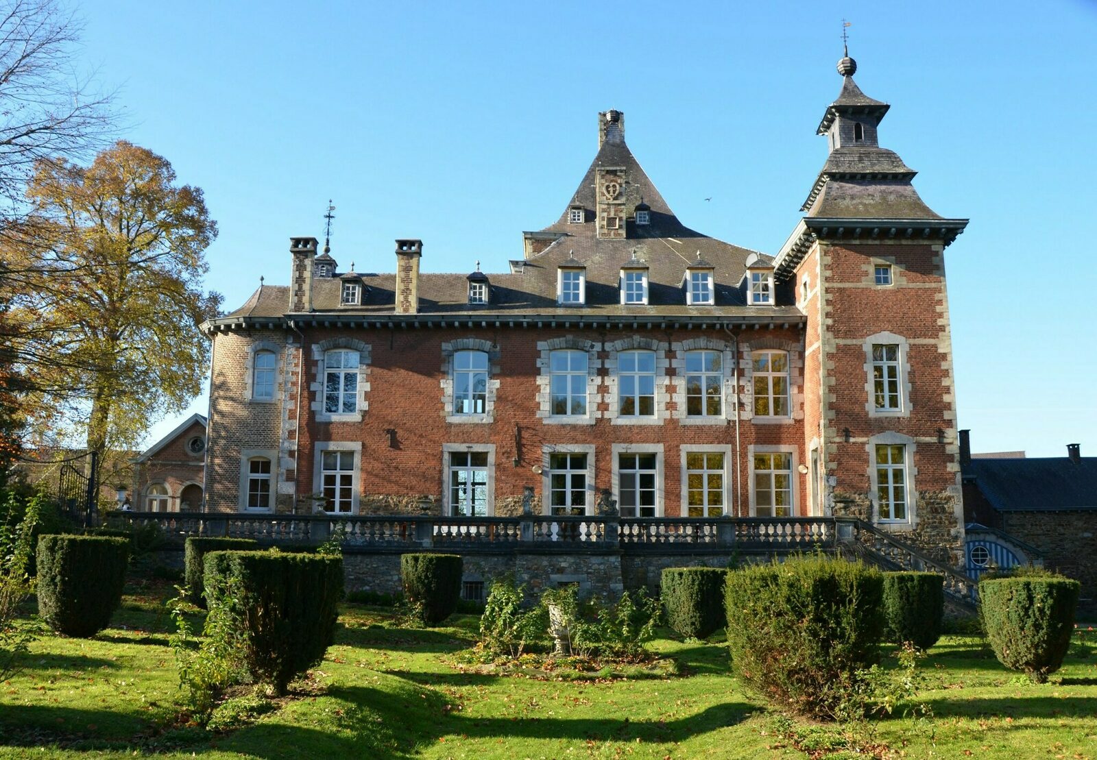 Naast recreatief verhuur kent het kasteel ook enkele vaste bewoners die op deze plek inspiratie opdoen om invulling te geven aan hun leven. Het landgoed is 76ha groot waarvan 15 ha bos en 45 ha weidevelden voor akkerbouw en fruitteelt en een paarden- schapen en eendenhouderij. U bent hier in het land van Hervé, gelegen tussen Maastricht en Luik. Het is een paradijs voor liefhebbers van natuur en stilte, vanuit ‘huis’ kun je urenlang wandelen in alle rust. Met recht een plek om te onthaasten. De Belgische Voerstreek ligt net voorbij Maastricht en is voor ieder seizoen een prachtige bestemming!