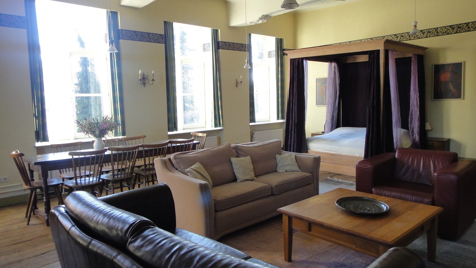 In deze ruimte staat ook een hemelbed.