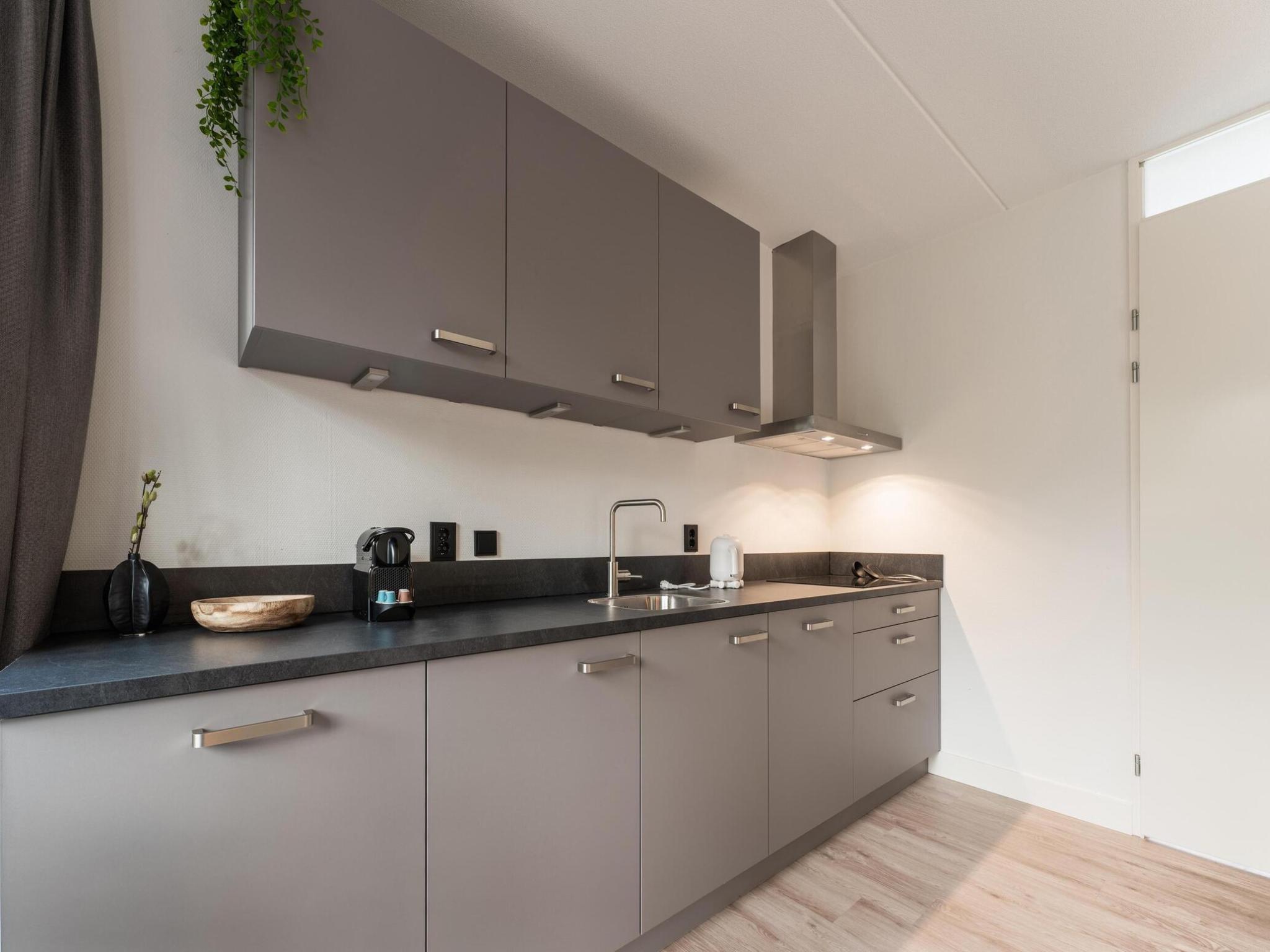 Begane grond: open keuken met kookplaat(inductie), waterkoker, afzuigkap, koffiezetapparaat(cups), combimagnetron, afwasmachine, koel-/vriescombinatie , woon/eetkamer met TV(smart TV), eettafel, zithoek , toilet