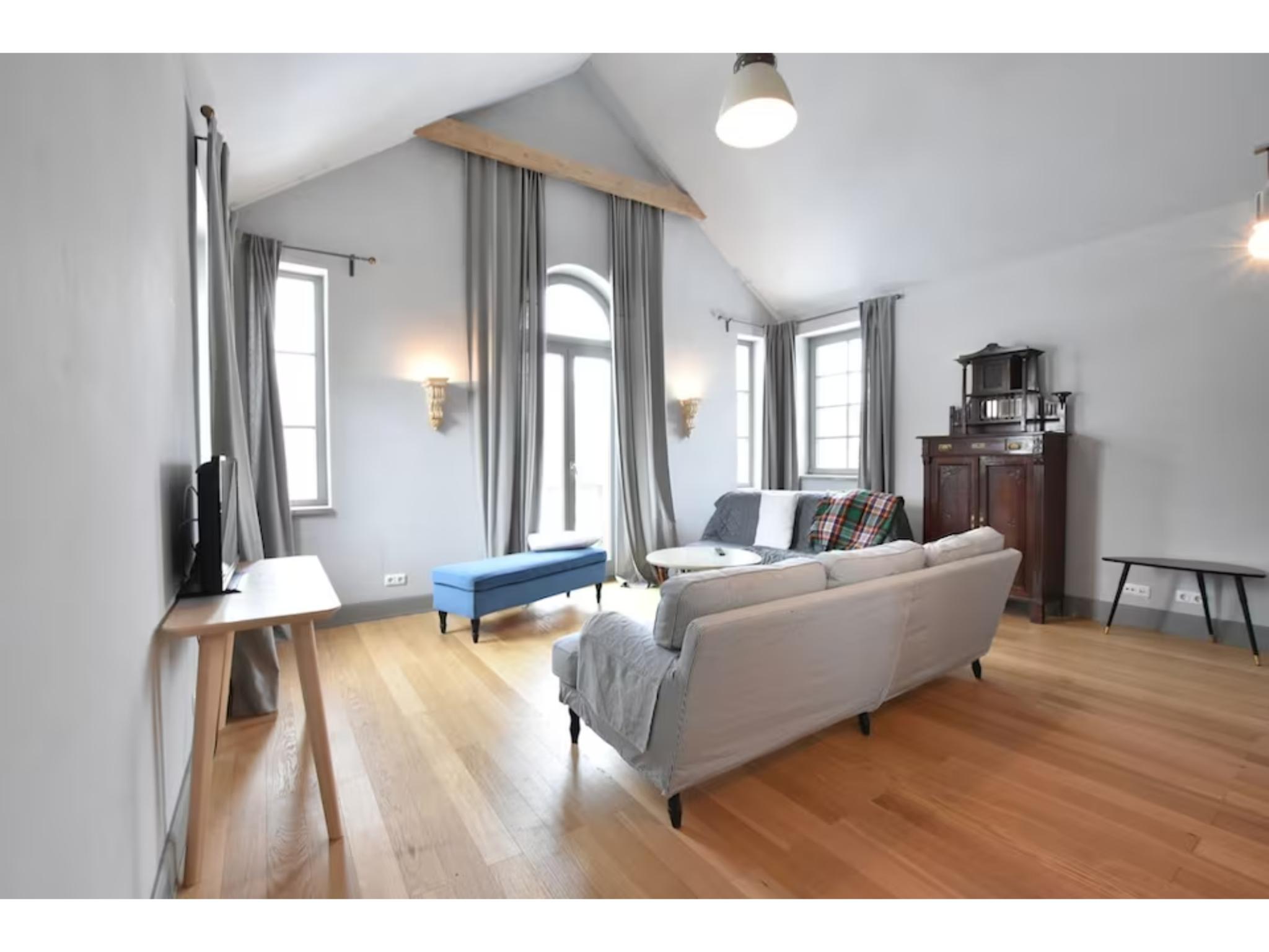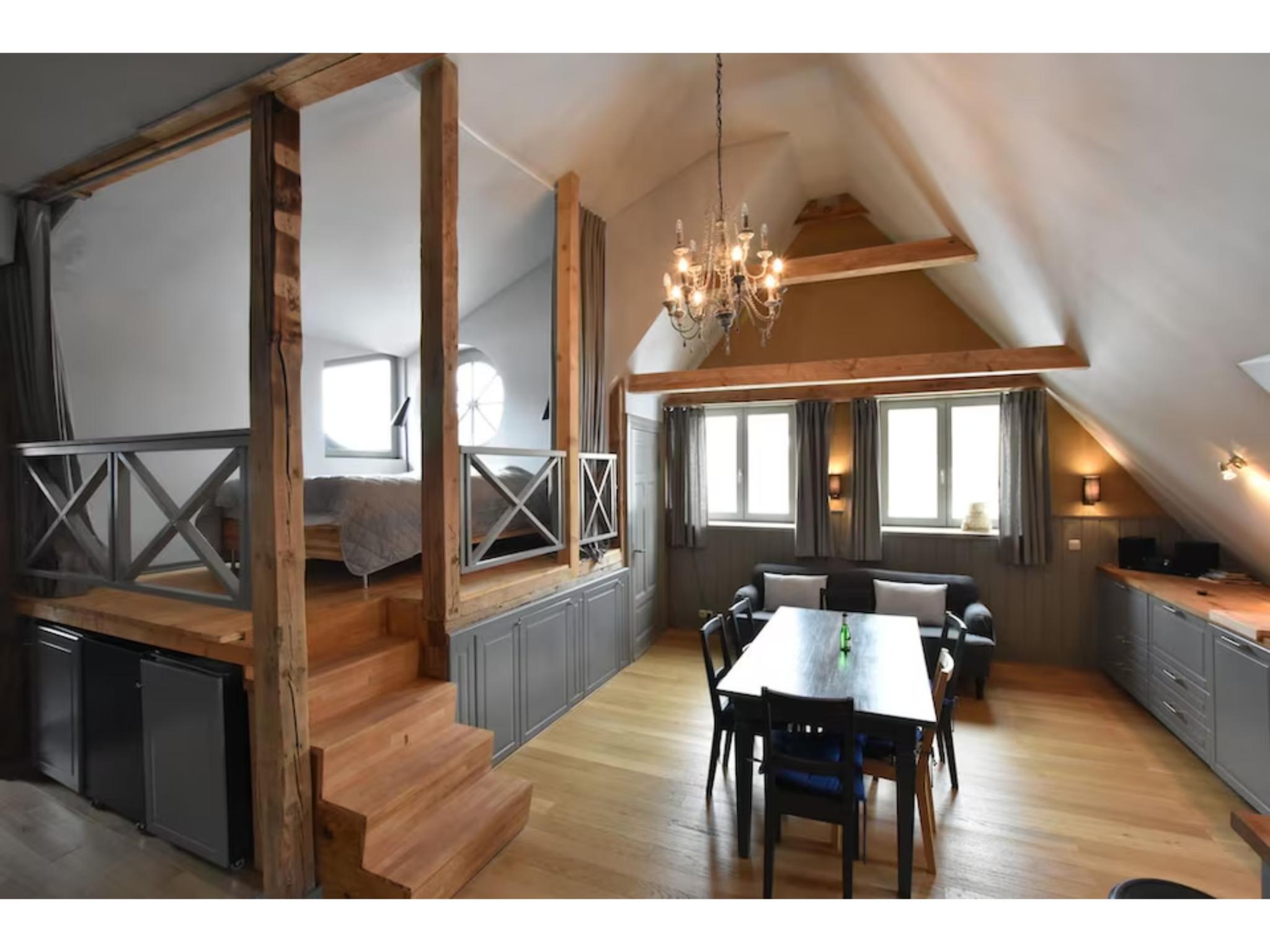 Op de 1e etage: woon/slaapkamer met 2-pers. vouwbed, TV(flatscreen) , woon/slaapkamer met 1-pers. bed, 1-pers. vouwbed, 2x 2-pers.king size bed , 2x slaapkamer met 2-pers.king size bed , slaapkamer met 2-pers. bed , badkamer met douche, wastafel, wc , badkamer met ligbad, wasbak, douche, wc