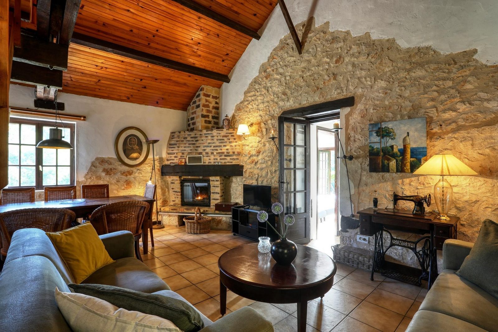 Ruime woon-/eetkamer met zithoek, open haard, satelliet-TV (Nederlandse zenders), audio-installatie met CD-speler.