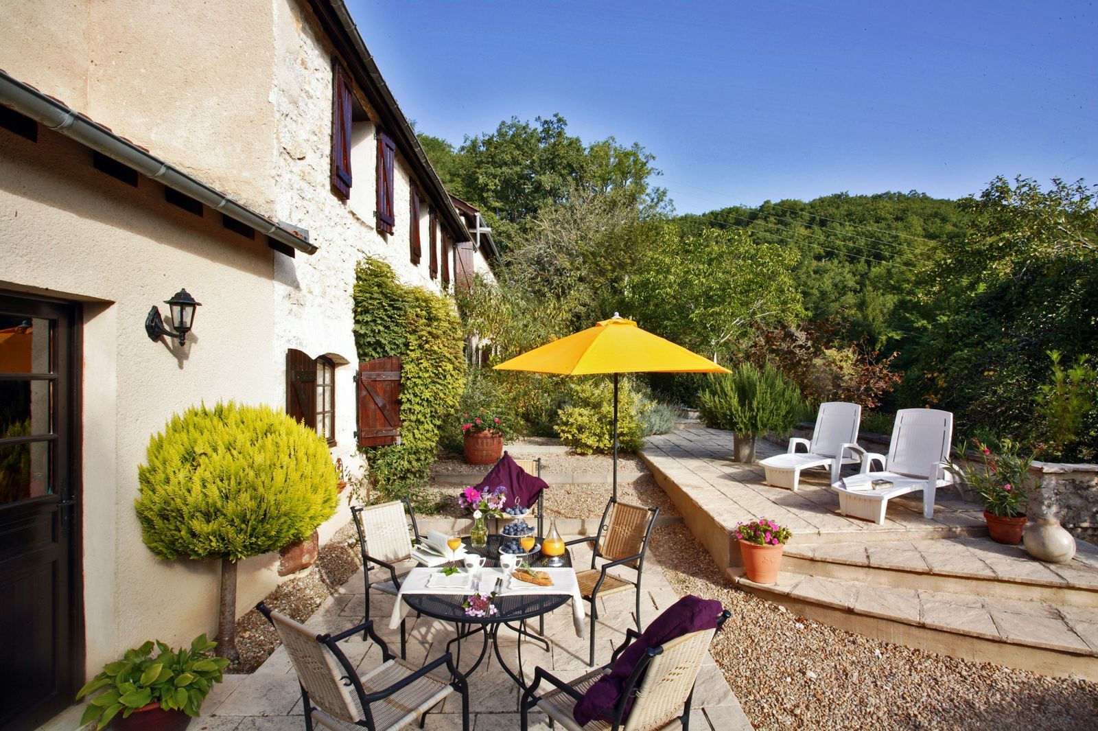 De vakantiewoningen liggen tegen de bosrand aan en zijn met smaak ingericht. In de grote tuin is een verwarmd zwembad met ligstoelen en parasols, gelegen op veilige afstand van de woningen. Er is een wellnessruimte met sauna en jacuzzi, deze kunt u privé afhuren. Heerlijk in het voor- en najaar en door het schitterende uitzicht (en kaarsjes) het toppunt van romantiek. Er is ruimte in overvloed en kinderen vermaken zich prima in de grote tuin, zandbak, tafeltennistafel of biljart. Ieder huis heeft een eigen terras, er is ook een groot overdekt terras waar je elkaar kunt ontmoeten en borrelen. Vanuit huis wandel je zo het bos in. De Périgord is een streek voor culinaire levensgenieters en wijnliefhebbers. De Nederlandse eigenaren wonen op het landgoed en verrassen u regelmatig met iets lekkers. Deze woning ligt uit het zicht van de vakantiewoningen. Tip: dit is een ideale locatie om met de hele familie vakantie te vieren.