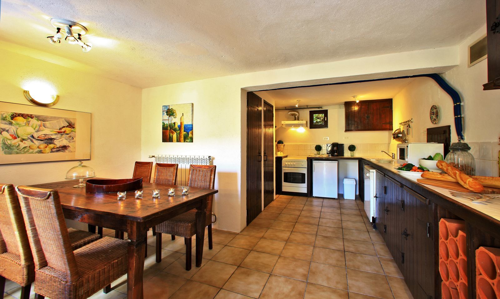Aparte keuken met eettafel en 4 gaspitten, koelkast met vriesgedeelte, oven, magnetron, koffiezetapparaat en vaatwasser.