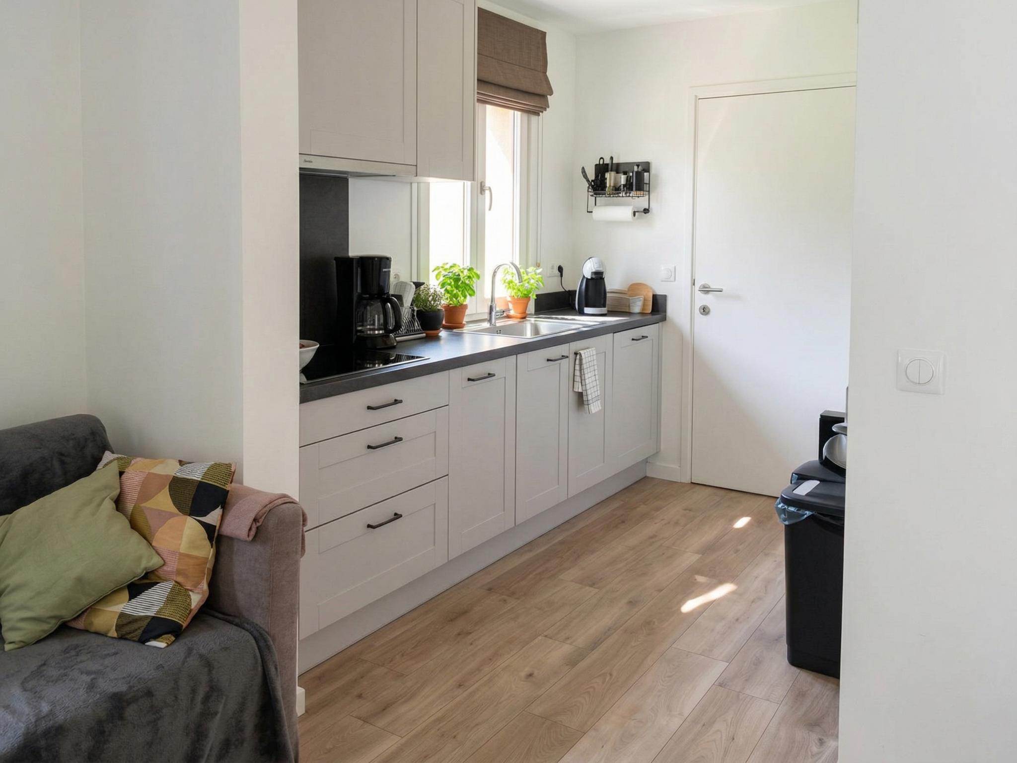 Begane grond: woonkamer met 2-pers. slaapbank, TV, zithoek , eetkamer met eettafel , open keuken met kookplaat(inductie), waterkoker, koffiezetapparaat(filtermaling), combimagnetron, afwasmachine, koel-/vriescombinatie , slaapkamer met badkamer met 2-pers. bed, douche, wastafel, wc , berging, airconditioning