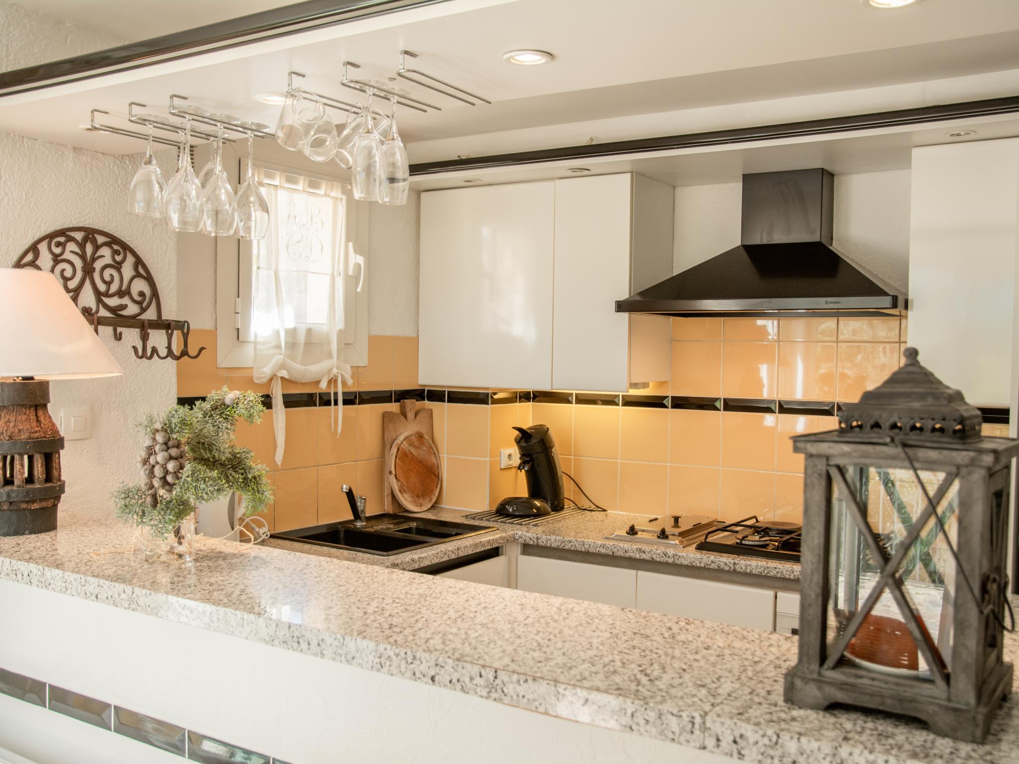 Begane grond: open keuken met bar, waterkoker, waterkoker, broodrooster, fornuis(4 kookplaten, gas), afzuigkap, koffiezetapparaat(pads), oven, magnetron, afwasmachine, koel-/vriescombinatie, citruspers , woon/eetkamer met TV(flatscreen, satelliet, internationale zender(s)), eettafel(4 personen), open haard, zithoek, CD-speler, stereo-installatie