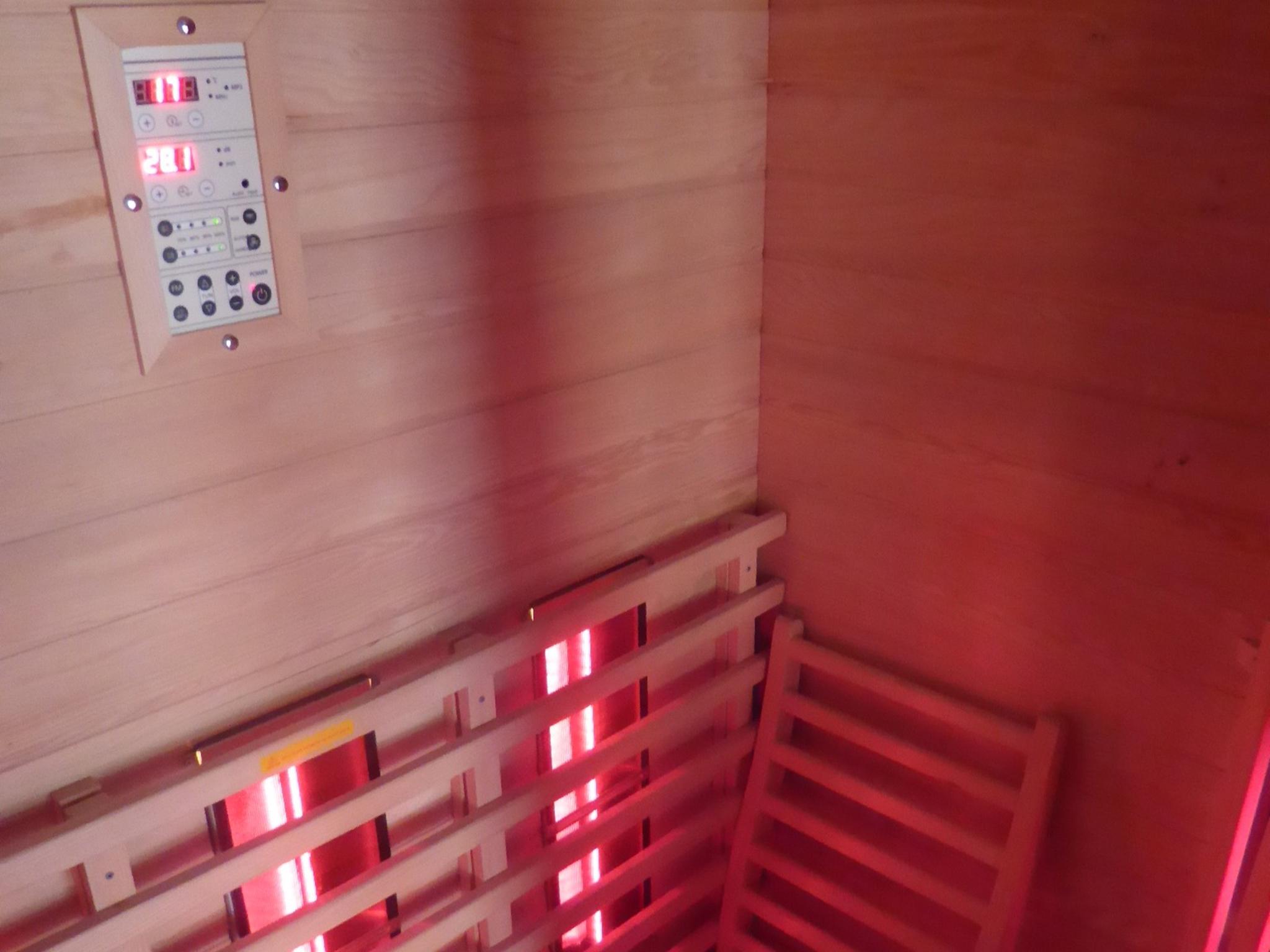 sauna(privé), terras(privé, overdekt), tuin(privé, omheind), tuinmeubilair, ligbedden, BBQ(houtskool), 4x parking(op hetzelfde terrein), parasol, zwembad(privé, wateralarm, 8 x 4 m., diepte: 0.6 – 1.8m, geopend van Mei t/m Sep)