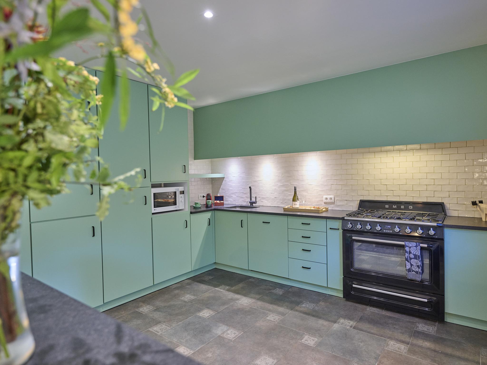 Begane grond: hal, woonkamer met TV(alleen streamen), eettafel, open haard, zithoek, radio, 1x kinderstoel(op aanvraag), gezelschapsspellen , keuken met waterkoker, broodrooster, fornuis(5 kookplaten), afzuigkap, koffiezetapparaat(filtermaling, nespresso cups), oven, magnetron, afwasmachine, koelkast, vriezer , badkamer met wasbak, douche, wc , verwarming(CV)