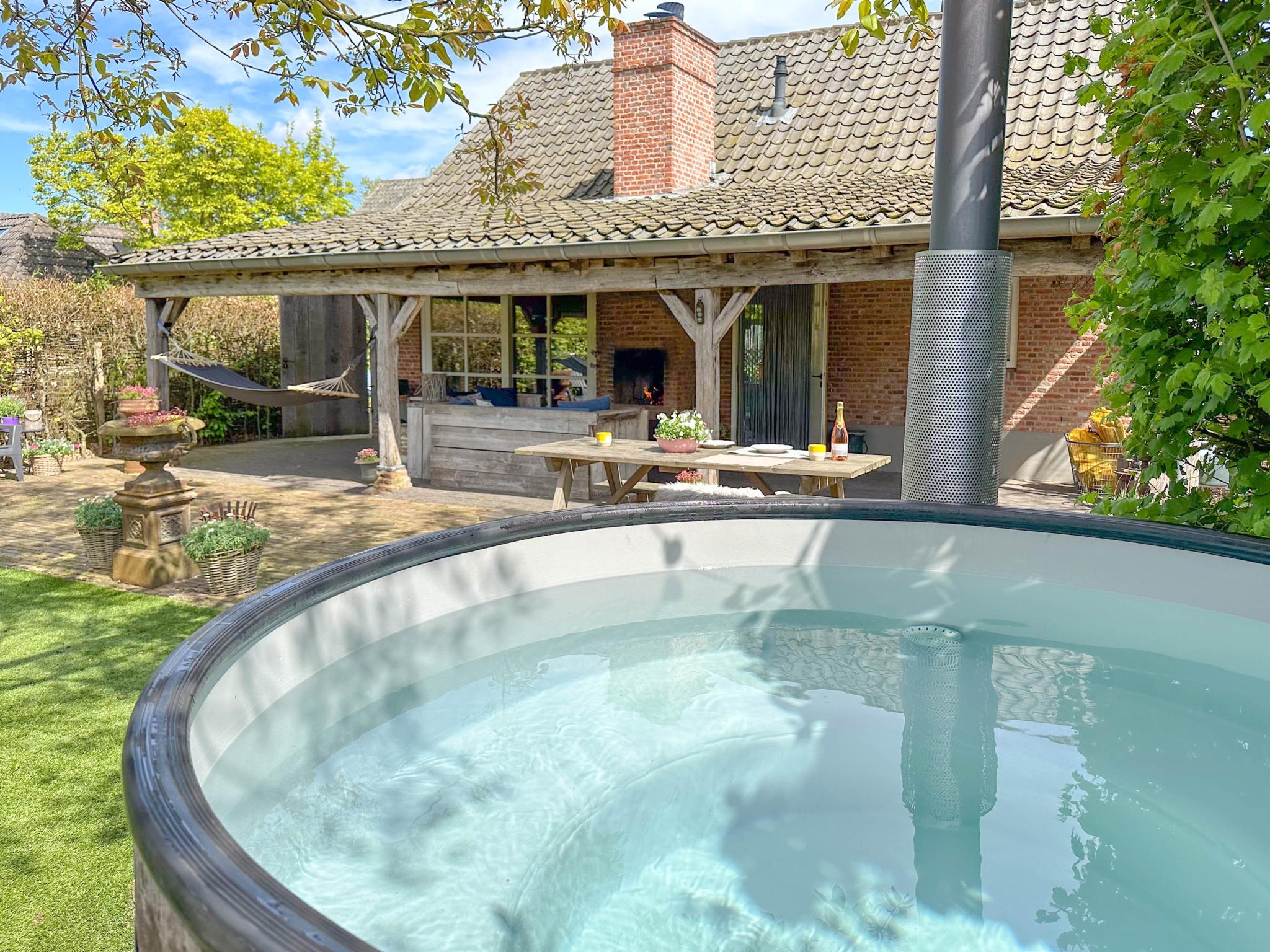 hottub(verwarmd door vuur), terras, tuin(privé, hond kan niet weglopen, omheind), BBQ(houtskool), 4x parking, trampoline, voetbalgoal, hangmat, 1x kinderbed (excl. beddengoed), lounge set, buitenhaard