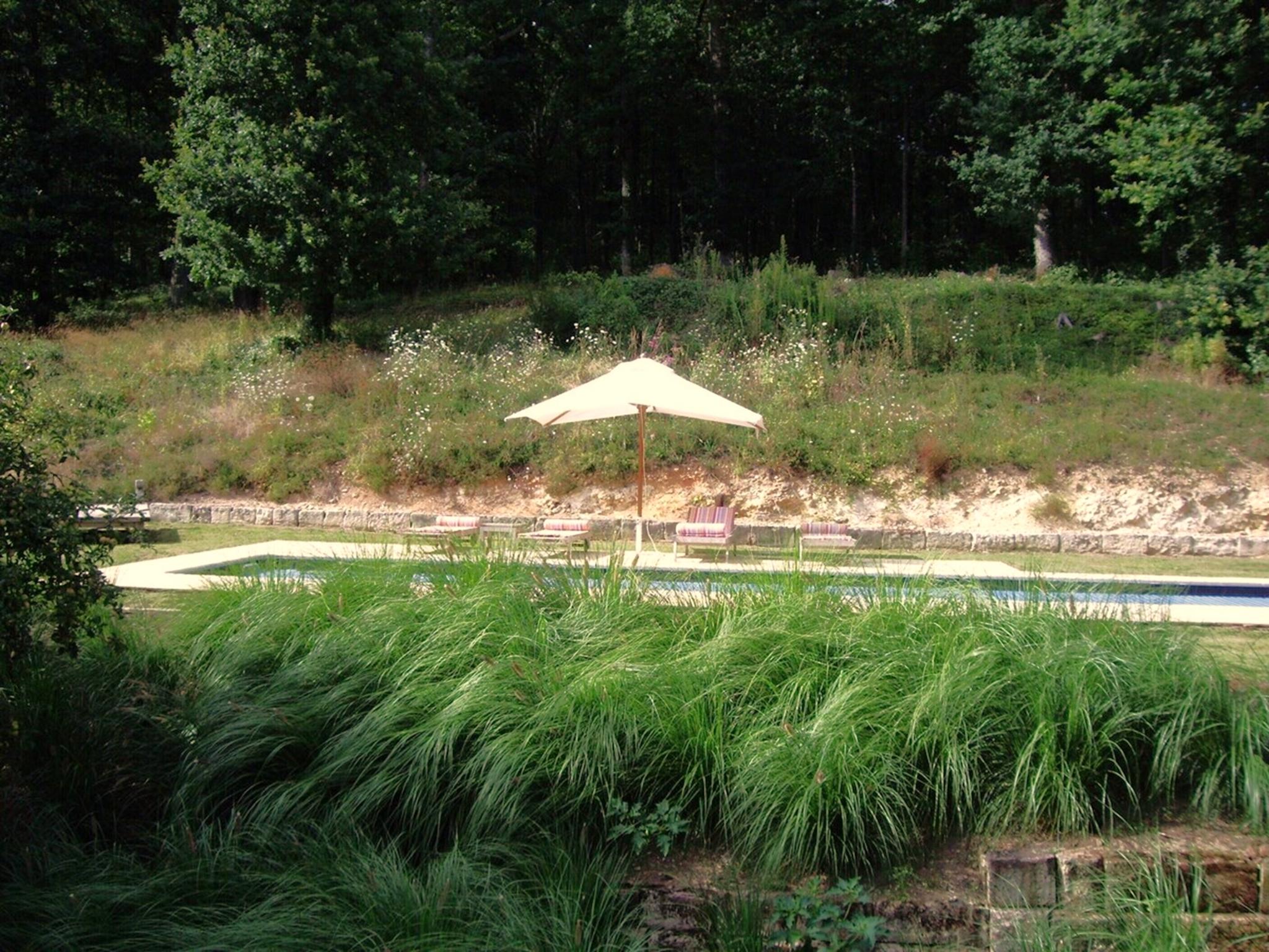 Het hoofdhuis en het bijgebouw zijn smaakvol ingericht, midden in een groene omgeving met een kabbelend stroompje aan het eind van de schaduwrijke parktuin en een heerlijk prive zwembad