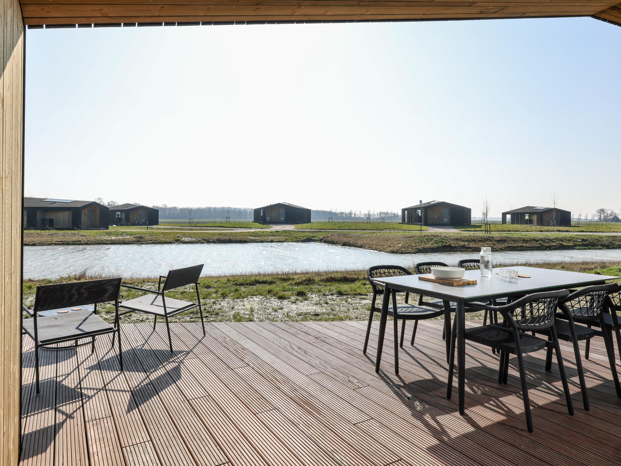 Vrijstaand natuurhuis met woonkamer en open keuken. Beschikt over 3 slaapkamers en twee badkamers: één met douche, wastafel en toilet en één met douche en wastafel, plus een separaat toilet in de hal. Via de schuifpui bereik je direct het grote overdekte terras met uitzicht op de waterpartij