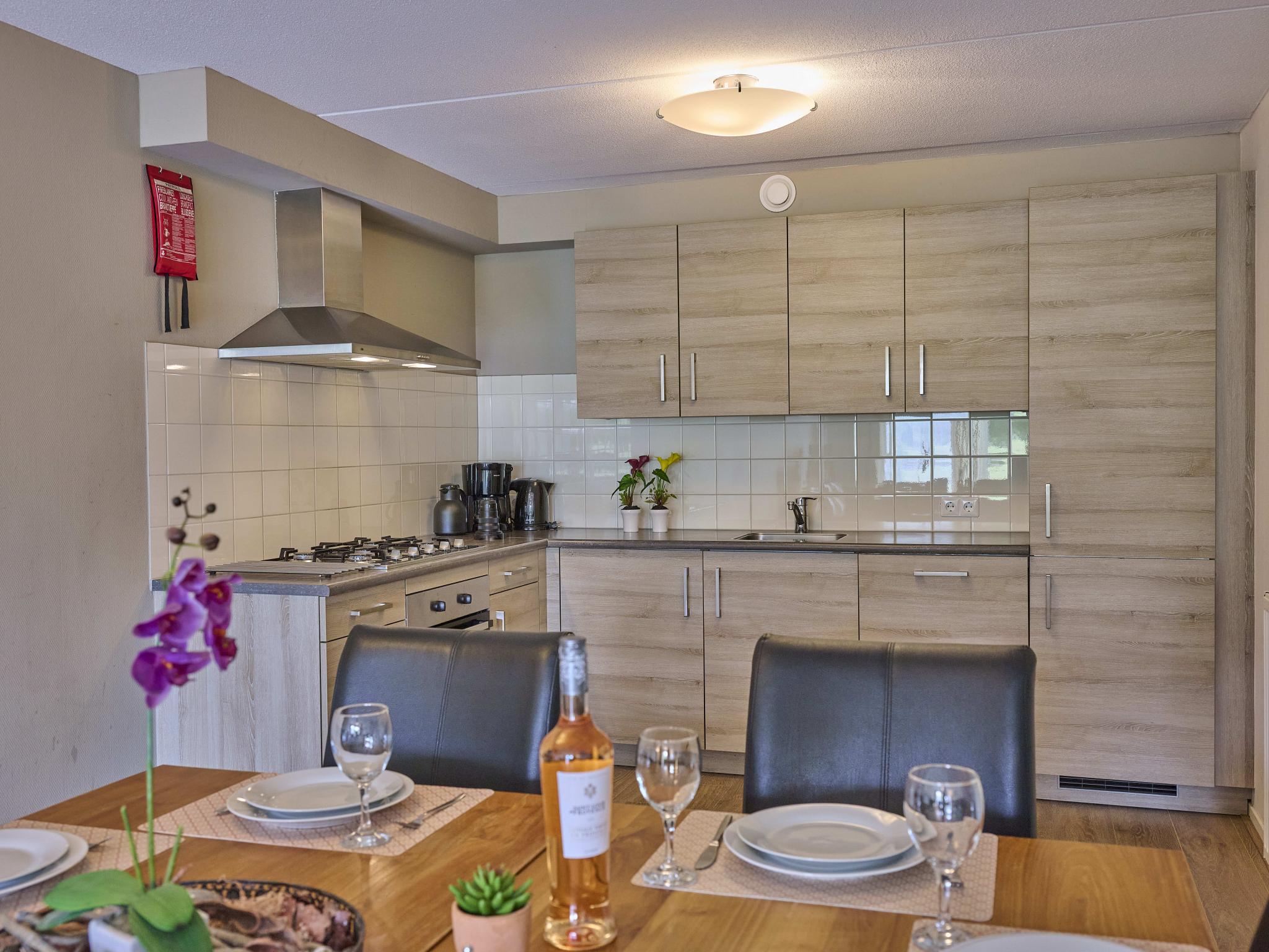 Begane grond: hal, woonkamer met TV(flatscreen, Nederlandse zender(s), Duitse zender(s), internationale zender(s)), zithoek, DVD-speler, gezelschapsspellen , open keuken met eettafel(8 personen), waterkoker, afzuigkap, koffiezetapparaat(filtermaling), oven(elektrisch), afwasmachine, koelkast , slaapkamer met 2-pers. bed(160 x 200 cm) , badkamer met ligbad, douche, wastafel, wc , toilet, terras, 1x kinderstoel