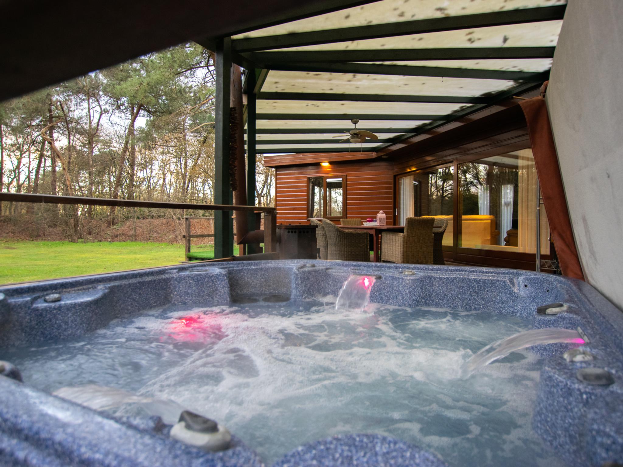 Samen met enkele andere lodges staat deze accommodatie aan de rand van natuurgebied de Maashorst. Dankzij haar ligging biedt het volop privacy en ontspanning. Ideaal als je even lekker tot rust wil komen in de sauna of in het spa-bad met uitzicht op het bos. Geniet van een goed boek bij de houtkachel (hout niet inbegrepen) op de veranda terwijl de kinderen zorgeloos spelen op de trampoline of speeltoestellen. Fantastisch voor alle leeftijden!