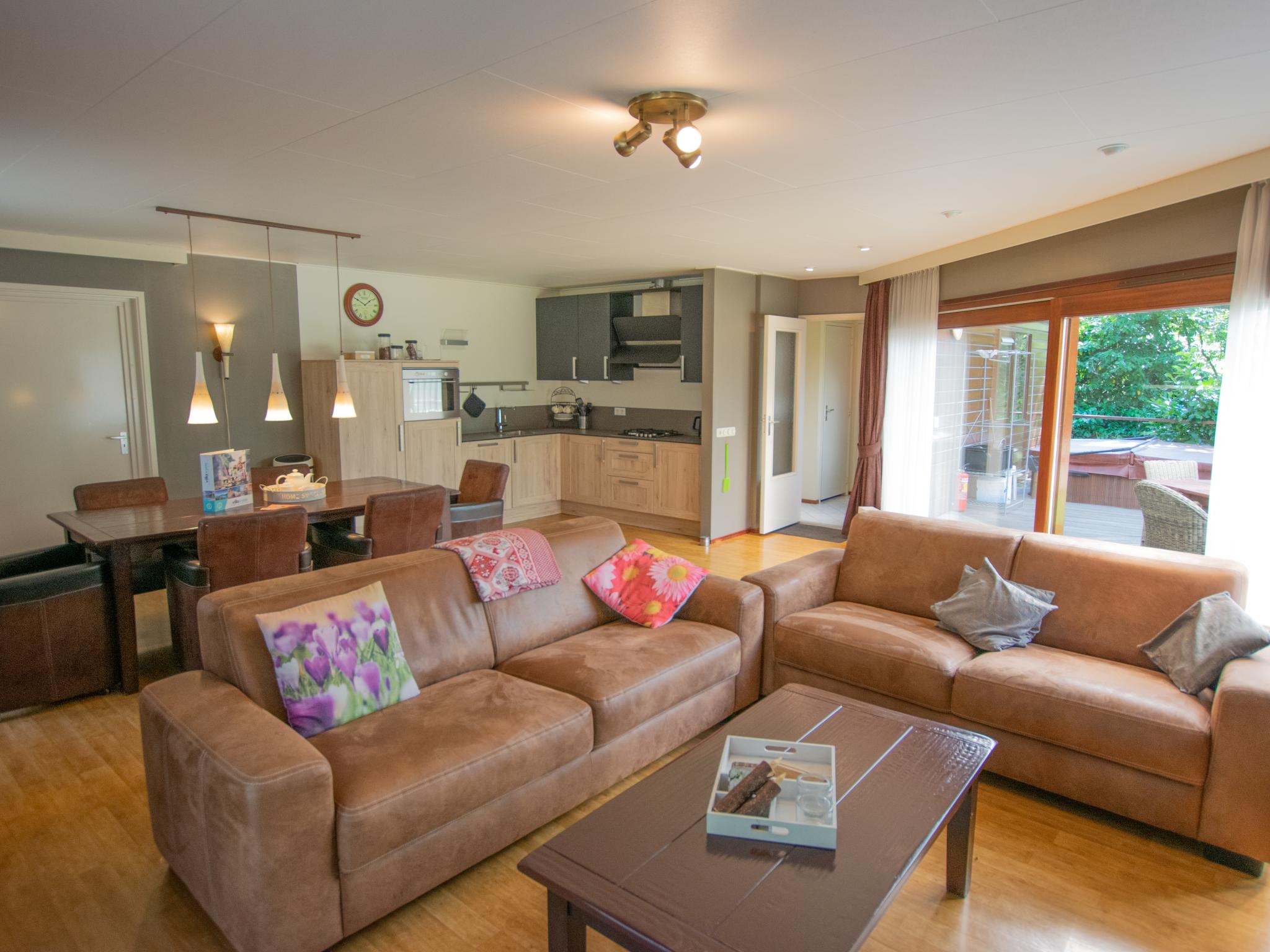Begane grond: open keuken met waterkoker, fornuis, afzuigkap, koffiezetapparaat(filtermaling), oven, magnetron, afwasmachine, koel-/vriescombinatie , woon/eetkamer met TV, zithoek, DVD-speler , slaapkamer met 2-pers. bed , slaapkamer met 2-pers. bed , slaapkamer met 2x 1-pers. bed , badkamer met douche, wastafel , toilet met wc