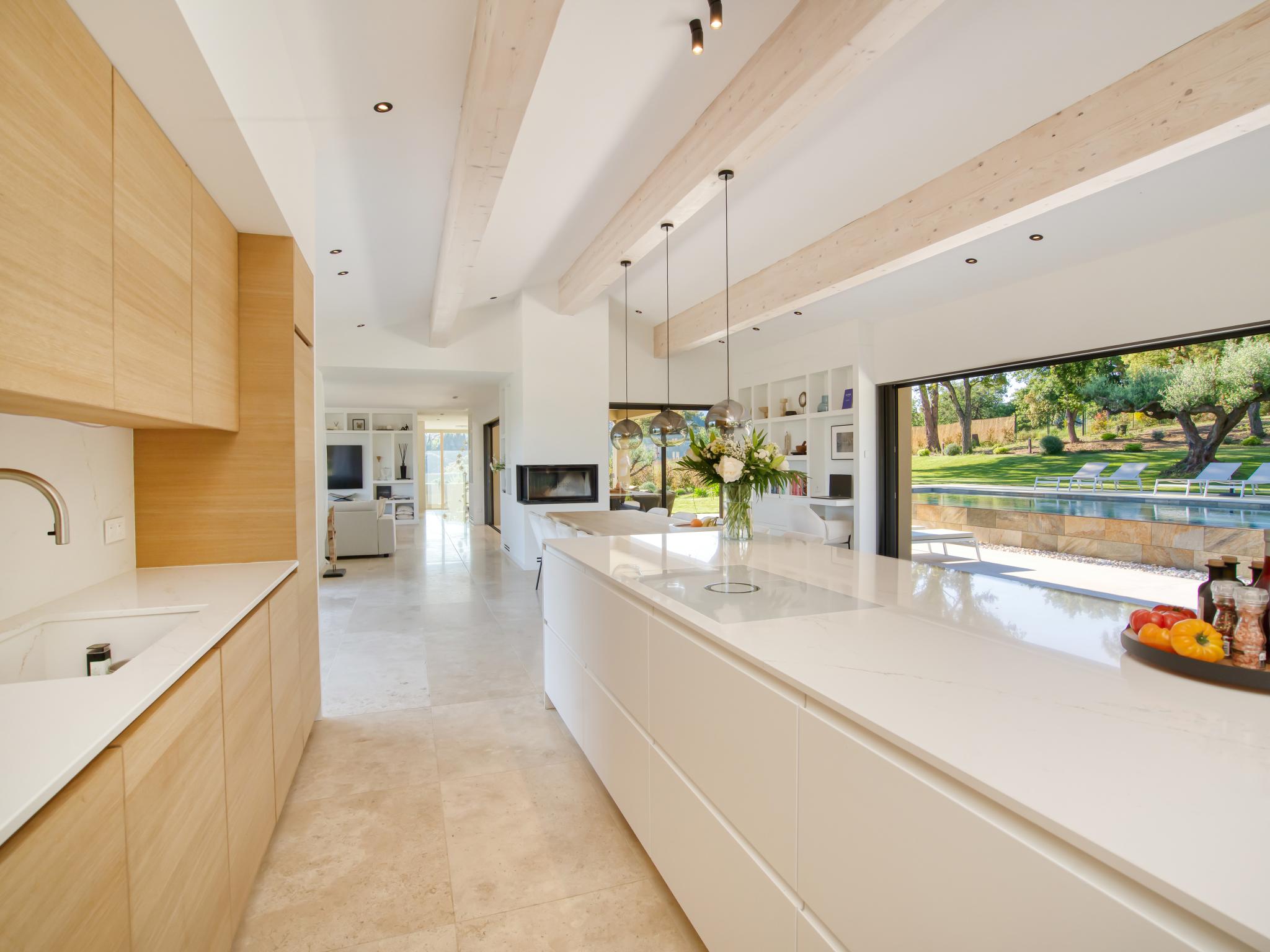 Deze TOP villa ligt op loopafstand van het dorp Grimaud en op slechts 5 km van de Middellandse Zee! Een uniek detail is een lift die de b.g. met de 1ste etage verbindt. In de prachtige verlichte tuin met schitterende uitzicht op het chateau van Grimaud, vind je o.a een verwarmd zwembad, spabad, jeu-de boules baan en een overdekte veranda met luxe loungehoek, ijskast, douche en wc, een grote eettafel waar je 's avonds de Green Egg en/of de dubbele gas BBQ aanmaakt voor een gezellig diner