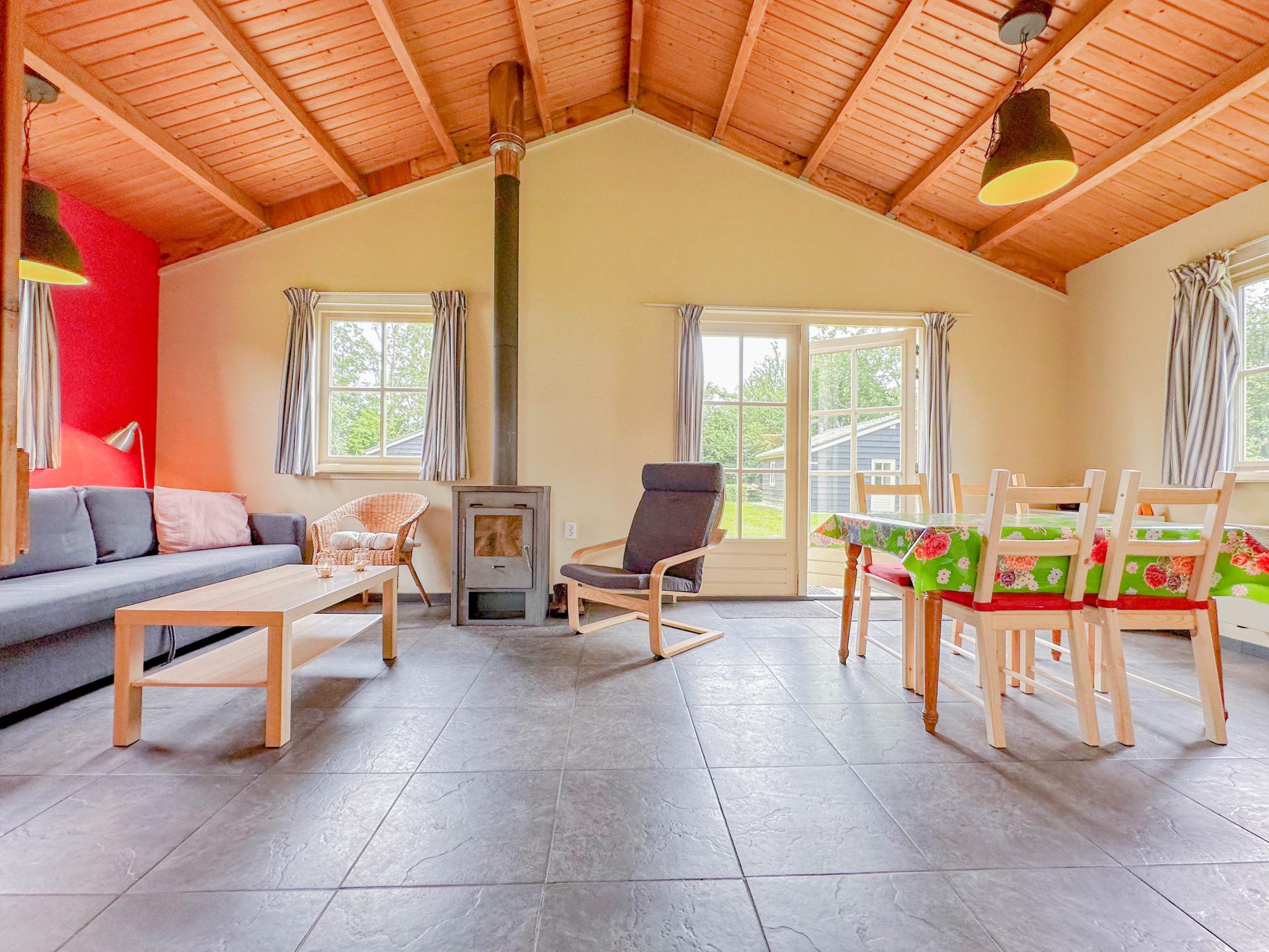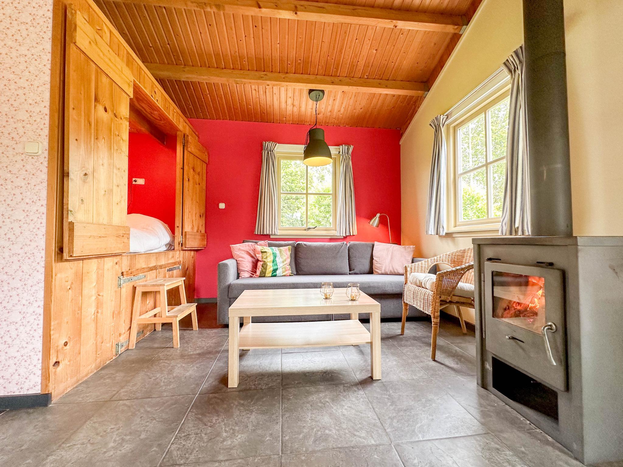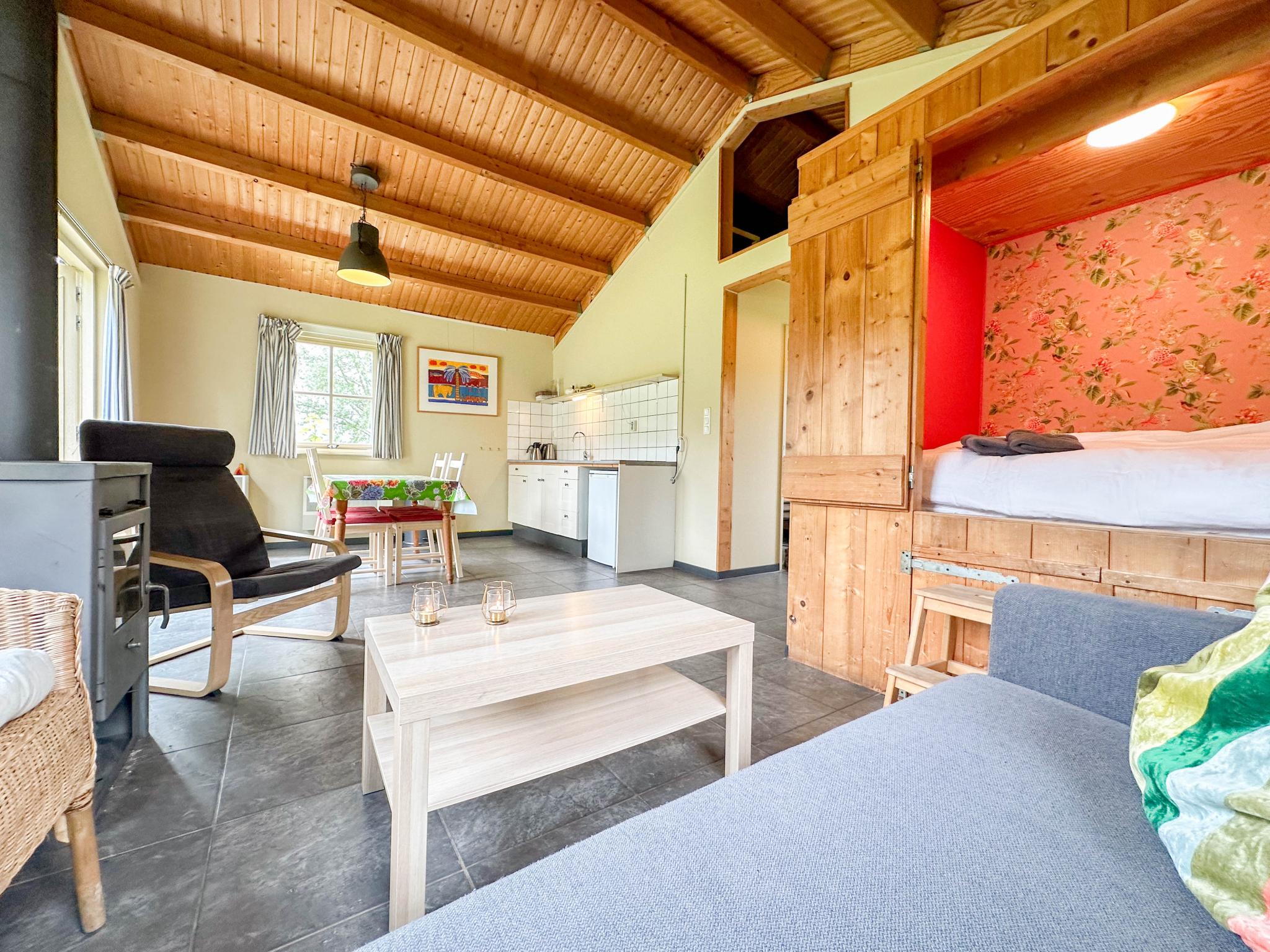 Begane grond: hal, open keuken met waterkoker, fornuis, koffiezetapparaat(filtermaling), koelkast , woon/eetkamer met 2-pers. slaapbank, 2 pers. bedstee, eettafel, kachel(hout), zithoek , slaapkamer met 2x 1-pers. bed , badkamer met douche, wastafel, wc , 1x kinderbed (incl. beddengoed)